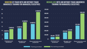 Fraud awareness training for all employees is an effective way to reduce fraud risk, but it’s especially impactful when managers and executives receive fraud-specific training. When company leaders are trained to detect fraud, fraud schemes are detected much faster and losses are not as steep.